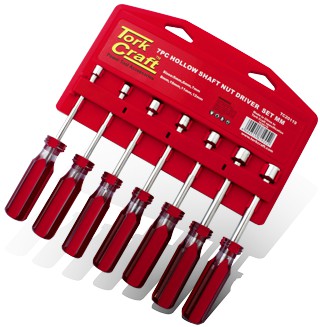 The shaft of the nut driver is hollow. This will allow the tightening or loosening of nuts on a threaded rods or long bolts that are out of reach of spanners or sockets.