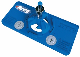Concealed hinges are great for mounting cabinet doors because they stay out of sight, they’re adjustable, and they work very well. Mounting them, though, requires drilling a large hole at a very specific position and depth. The Kreg Concealed Hinge Jig takes the guesswork out of drilling those holes, and allows you to do it with nothing more than a drill and the carbide-tipped bit that comes with the jig.